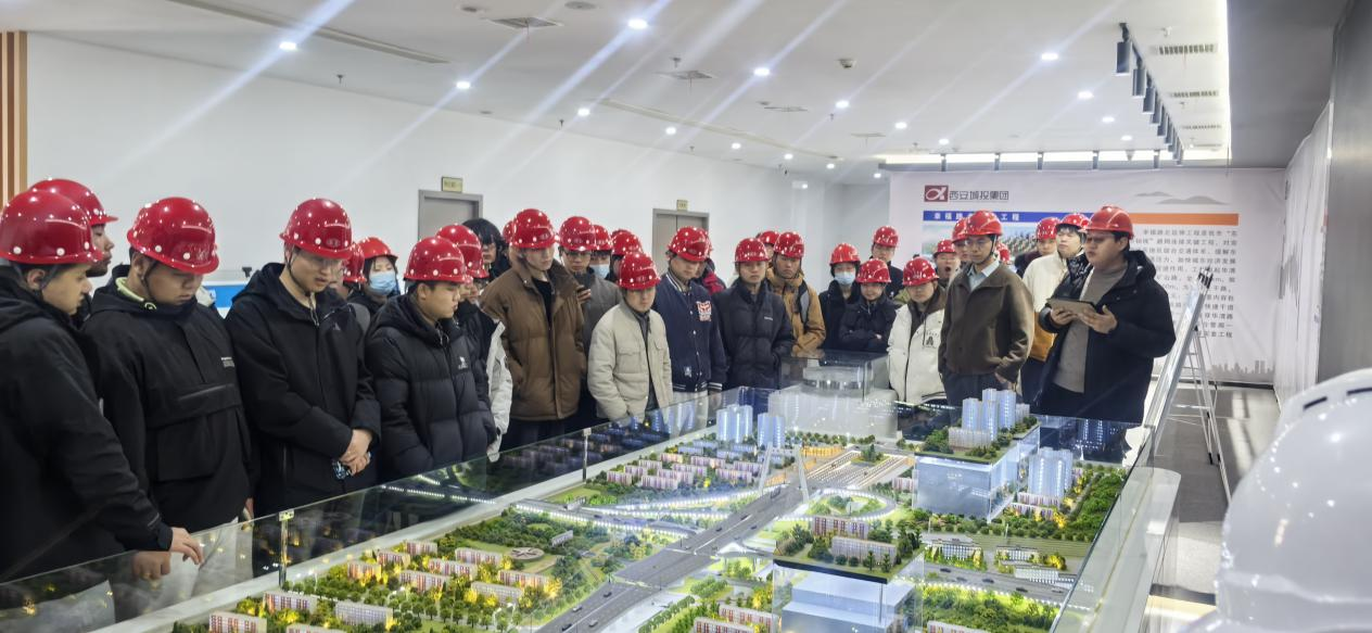 3月6日,球王会体育官方网站土木工程专业53名大四学生走进由西安城投集团投资,中建丝路、中建六局和西安市政道桥建设集团有限公司承建的幸福路北延伸工程项目现场,开展毕业实践教学。该项目已进入攻坚决胜阶段,即将迎来超大型独塔斜拉桥69.45度转体,为主线通车奠定坚实基础。据悉,该桥转体总长161.15米,重量4.8万吨,为目前国内多向不对称斜拉转体桥转体重量之最。由西安市政道桥建设集团有限公司项目负责人、中建丝路和中建六局项目部工程师及专业教师刘洋、褚峰组成的现场教学团队,通过“理论讲解+模型展示+技术实训”多维度教学,为学子充分讲述了该工程设计与施工过程中的诸多重难点问题及相应技术处理措施,提升了学子解决工程难题的能力。