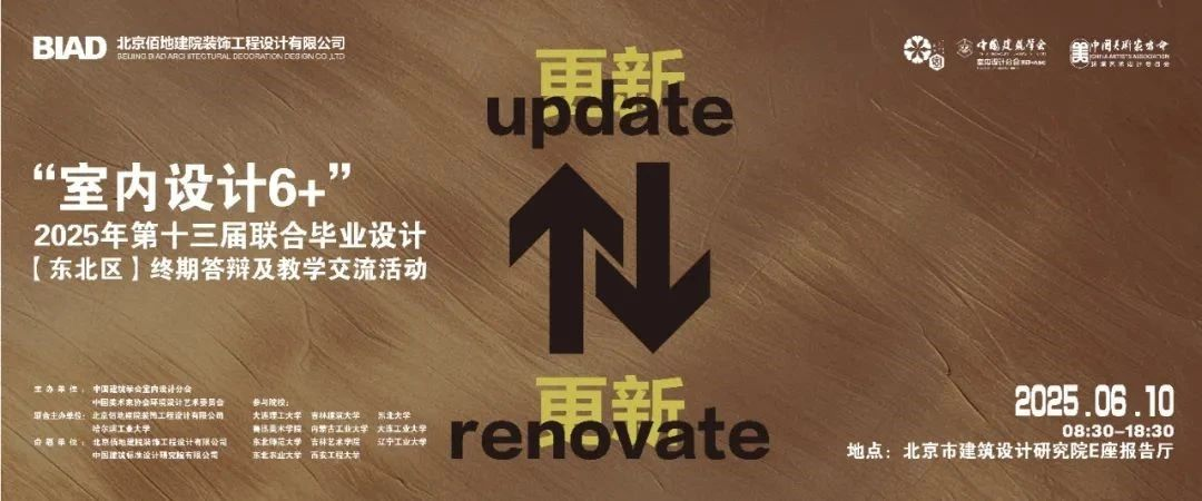 2025年6月10日,由中国建筑学会室内设计分会主办,中国美术家协会环境设计艺术委员会、北京佰地建院装饰工程设计有限公司与哈尔滨工业大学联合主办的"室内设计6+"2025第十三届联合毕业设计(东北组)终期答辩及教学交流活动,在北京建筑设计院E座报告厅举办。本届联合毕业设计的总命题为"更(Gēng)新•更(Gèng)新——"再定义"空间设计"。来自大连理工大学、吉林建筑大学、东北大学、鲁迅美术学院、内蒙古工业大学、大连工业大学、东北师范大学、吉林艺术学院、辽宁工业大学、东北农业大学、球王会体育官方网站等11所高校的指导教师和学生代表,以及设计企业代表共同参加了此次终期答辩会。