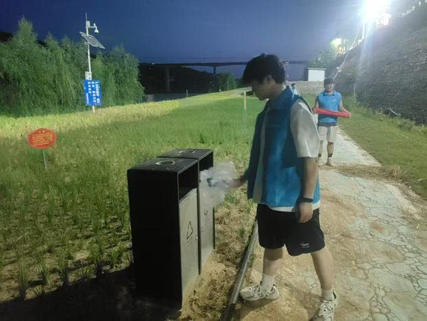 炎炎烈日下,身着统一志愿者服装的师生们迅速行动。他们细致排查黄河滩涂上的每一个卫生死角,弯腰捡拾塑料瓶、废弃包装袋、碎纸片等各类垃圾。汗水浸透了衣衫,但师生们毫无怨言,经过数小时细致清理,河岸环境焕然一新,黄河母亲重现洁净容颜。三个多小时的高强度作业,汗水在天蓝色马甲上浸出深色盐渍。当夕阳为河面镀金时,千米滩涂重现自然肌理,波光中再不见刺眼的人工造物。