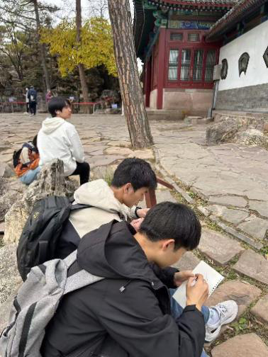 北海公园、故宫、圆明园、颐和园等古典园林具有别具一格的园林风貌和深厚的文化底蕴,同学们在考察过程中尽情领略其园林的绝美风姿、文化的醇厚韵味以及历史的斑驳痕迹,深切感受皇家园林所蕴含悠久文化传承。在罗萌老师的悉心指导下,同学们在现场实践活动中大展身手,绘制了平面图和人工植物群落的效果图,将所见所感转化为笔下的艺术作品,进一步加深了对中国传统建筑的理解与感悟。