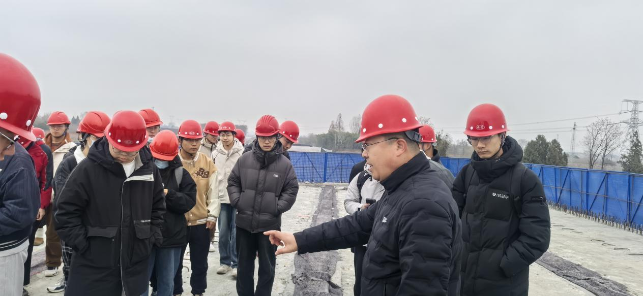 3月4日,球王会体育官方网站土木工程专业53名大四学生走进由陕西交通控股集团和陕建集团投资,陕西高速机械化工程有限公司承建的鄠周眉高速三标段建设现场,开展毕业实践教学。本次参观内容包括项目拌合站、工地实验室、路基施工工作面、预制梁场和黑河大桥等。当前,黑河大桥建设已完成右幅合龙,全线设8处互通立交,通车后将结束周至无高速历史,分流京昆高速压力,强化主城与西南郊县联系。现场教学团队由陕西高速机械化工程有限公司项目部总工宋锦峰、安全总监高壮及专业教师刘洋、褚峰组成,通过“理论讲解+技术实训”双维度教学,为学子搭建起贯通“理论学习”与“现场实训”的专业认识通道。