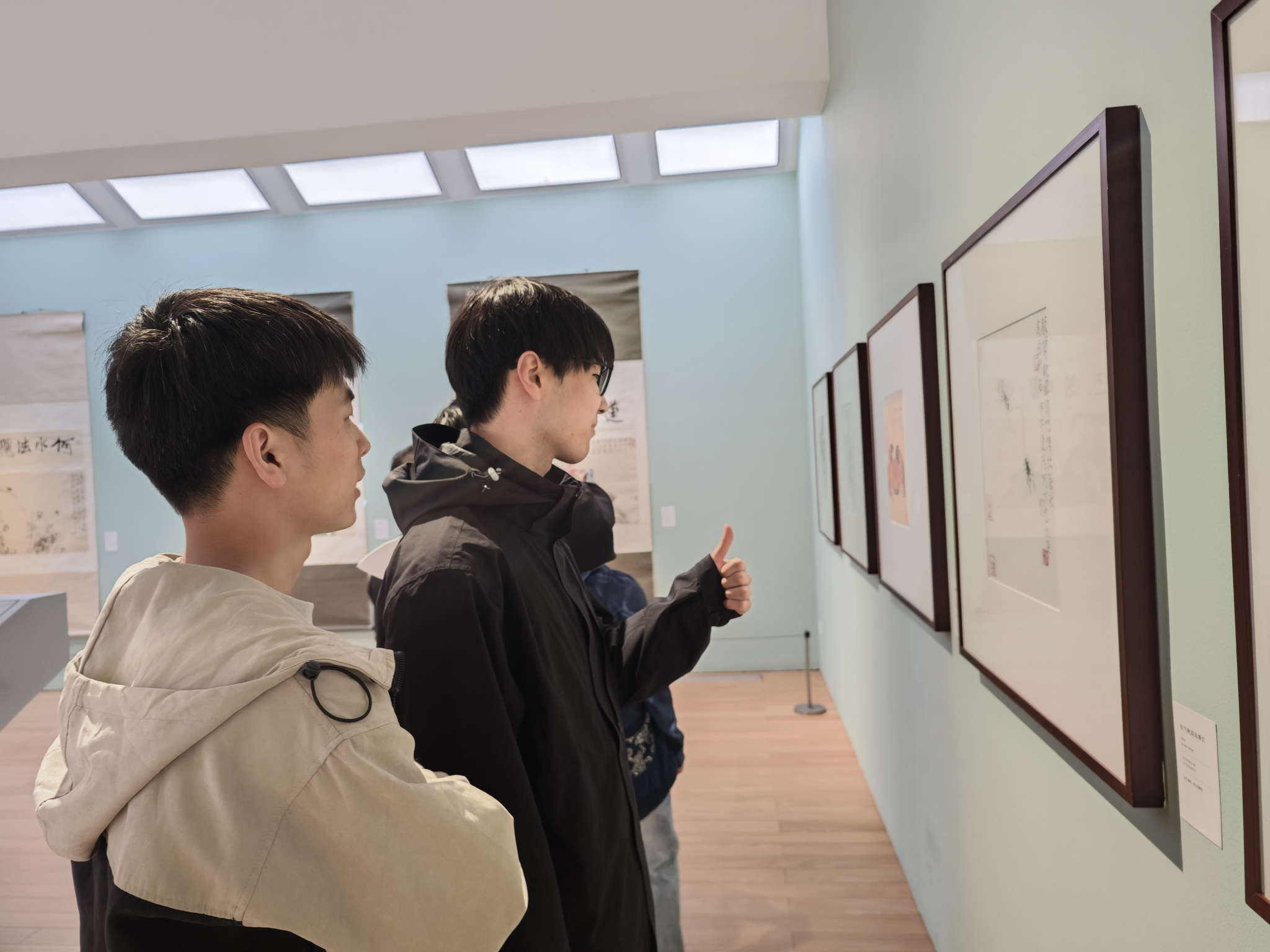 10时30分,师生转赴苏州博物馆。贝聿铭设计的几何形体在阳光下熠熠生辉,同学们惊叹于片石假山的当代诠释——以水墨渲染的砂岩切片叠砌,竟在室内重构了米芾的“米氏云山”。主厅的八角形天窗将天光揉碎,投影在墙面形成流动的竹林剪影;文创区用金属网复刻留园花窗纹样,电子屏在其后播放四季园景,虚实交织间,传统园林化作可触摸的数码诗篇。