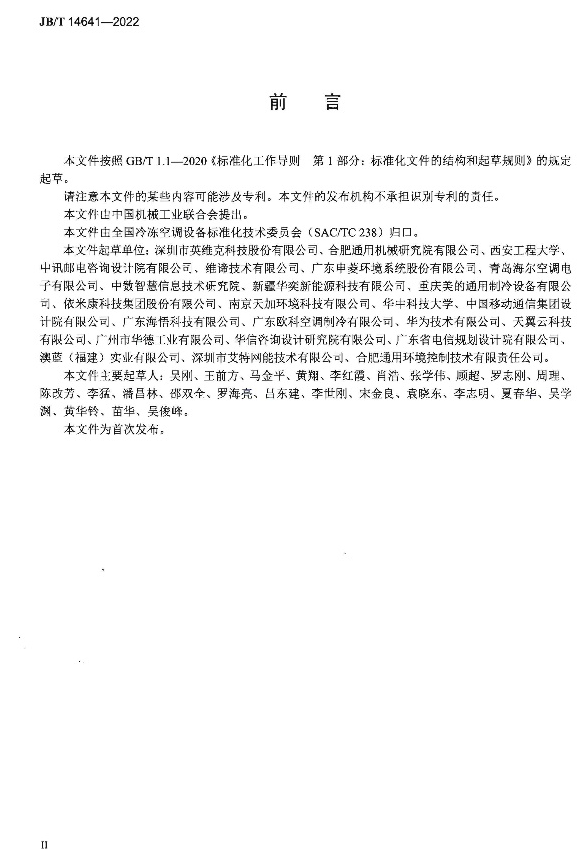 《计算机和数据处理机房用间接蒸发冷却空调机组》(JB/T 14641-2022)规定了计算机和数据处理机房用间接蒸发冷却空调机组为技术要求、试验方法、检验规则以及标志、包装、运输和贮存。该标准适用于计算机、数据处理机和通信设备等机房用的间接蒸发冷却空调机组的制造。