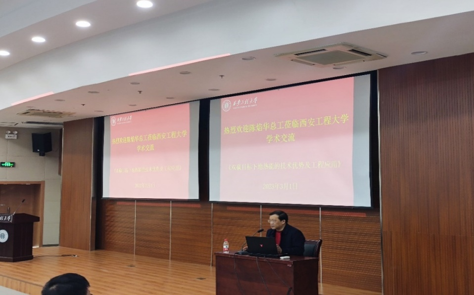 最后,学院教授委员会主任黄翔教授作总结,黄翔教授高度评价了陈焰华总工的报告,他说:在骊山脚下、华清池边这一地热能极为丰富的区域,能够聆听陈总的关于地热能利用的学术报告对学院师生都是一次难得的机会,陈总的报告开阔了师生的学术视野,提升了学院科研文化氛围,激发了学院师生了解前沿学科与探索新兴技术的兴趣和积极性。