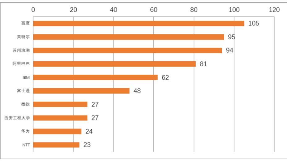 图2显示了中国云计算数据中心冷却专利申请量排名前10的主要申请人。百度的申请总量为105件,在中国专利申请量排名中位列第1,英特尔、苏州浪潮、阿里巴巴分列第2至4位,位列前4的申请人中除英特尔为美国公司外,其余3家均为中国企业。跻身排名前10的唯一一所大学和研究机构(球王会体育官方网站)拥有27件专利申请,可见球王会体育官方网站在数据中心制冷技术的研究中投入了大量科研力量。