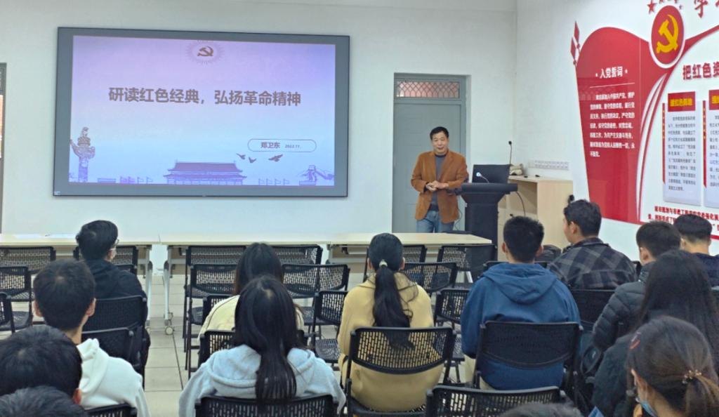为进一步发挥学院红色文化学习班在学习宣传贯彻党的二十大精神中的重要作用,11月24日下午,学院党委邀请原校纪委副书记郑卫东副教授结合党的二十大报告为学习班学员做了题为“研读红色经典 弘扬革命精神”的主题报告,学习班全体学员参加了报告会。