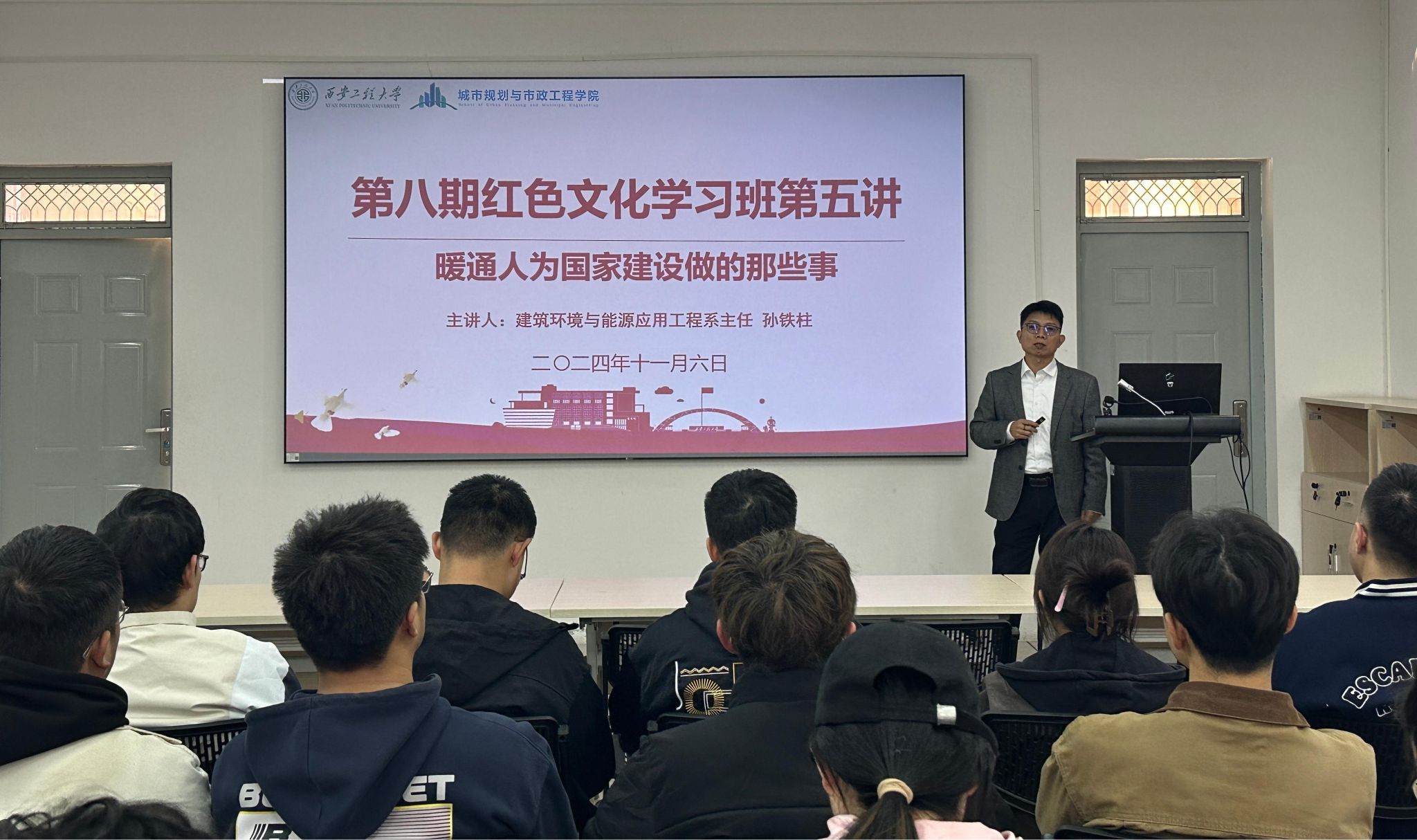 11月6日下午,球王会体育第八期红色文化学习班第五讲在学院322报告厅开讲。学习班邀请到建筑环境与能源应用工程系主任、建筑环境与能源应用工程系“三全育人导师团”团长孙铁柱副教授主讲,学习班班长王春元及全体学员参加了学习。