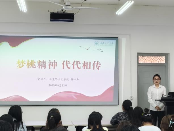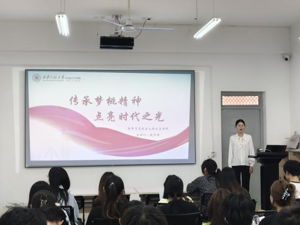 2025年6月23日,球王会体育在笃行楼322报告厅举办红色文化学习班第九期第三讲“梦桃精神代代相传”主题宣讲活动。活动邀请马克思主义学院青年马克思主义理论宣讲团成员深情分享,红色文化学习班第九期全体学员共同参与,辅导员杜倩主持会议。