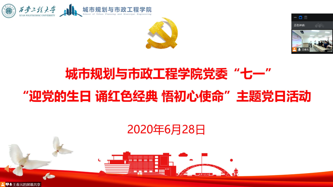 2020年6月28日下午,球王会体育在学院红色文化图书室(8-322室)举行“迎党的生日诵红色经典守初心使命”的主题党日活动。活动采取线上与线下同步开展的方式,学院党政班子成员、建环系黄翔教授、赵娟博士、全体辅导员及16级56期在校本科生党员参加了线下的现场活动,线上参加活动的有学院全体师生党员。活动由重温入党誓词、发放捐款收据、诵读红色经典三个环节构成。党日活动由学院党委书记杨友谊主持。