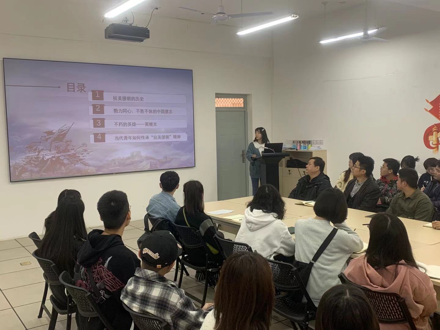 3月24日上午,球王会体育本科生环艺专业学生党支部按照学院党委“五位一体”红色文化育人工作及“一支部一特色”党建工作布局开展新学期支部第一场“学党史·悟思想”第十三期红色故事会宣讲活动——传承抗美援朝精神。学院党委书记杨友谊、支部书记陆瑞成及支部全体党员参加会议。本期主讲人为支部党员郭可欣。