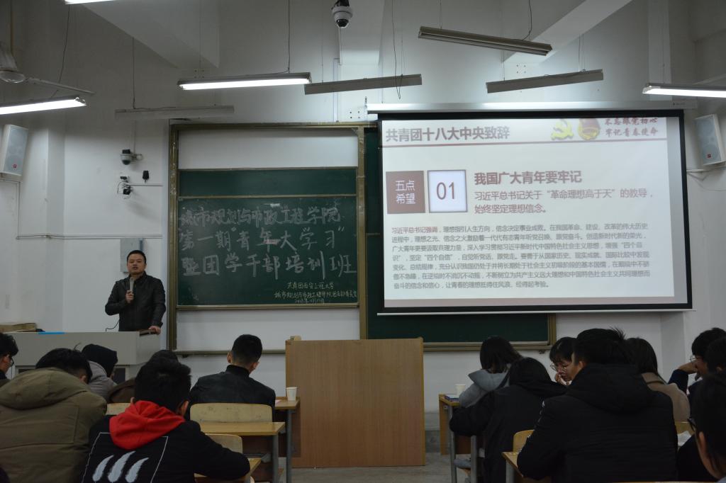 首先,凌旭老师进行了讲话。他强调了团学干部要明确自身职责,认真做好本职工作,干事要加强与部长的交流,做到多学多问,干事和部长之间要互相配合,共同完成相应的任务。然后,凌旭老师进行了培训班第一次授课,共青团十八大精神解读。他强调了中国共青团以“坚定不移跟党走”为初心,以“为党和人民不懈奋斗”为使命,并要求团学干部要深入学习贯彻习近平新时代中国特色社会主义思想,增强“四个意识”,坚定“四个自信”,加强学习,打牢扎实的知识根基,实事求是,与时俱进,开拓创新。最后,凌旭老师对广大团学干部提出了五点希望:一是始终坚定理想信念;二是着力锤炼高尚品格;三是不断增长能力才干;四是永远保持奋斗精神;五是勇于投身创新创造。