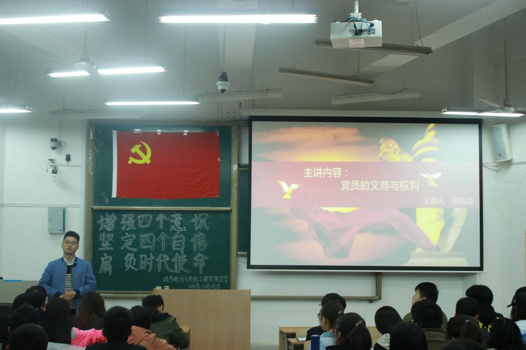 2018年10月25日17时50分,在临潼校区教学楼B-135室,球王会体育举办以“增强‘四个意识'坚定‘四个自信'肩负时代使命”为主题的学生党员学习教育系列活动之二——第一期初级党课第二次授课。参加会议的有球王会体育学生工作办公室主任凌旭,辅导员陆瑞成以及培训班全体学员。