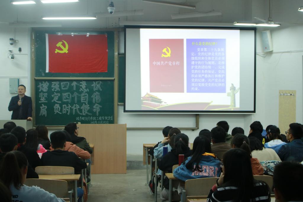 球王会体育学生工作办公室主任凌旭、辅导员陆瑞成先后进行了第二次授课。首先,由凌旭讲述党纪的基本知识,并介绍了当前反腐倡廉形势,提出“全面从严治党,永远在路上”。然后凌旭对培训班全体学员提出三点要求:一是要加强政治学习,提高政治觉悟;二是要遵规守法,严于律己;三是要加强个人的道德修养,坚持自重、自省、自警、自励。随后由陆瑞成介绍了党员的八项义务与八大权利,以及入党誓词,提出要端正入党初心,并指出了四大考验及四大危险。