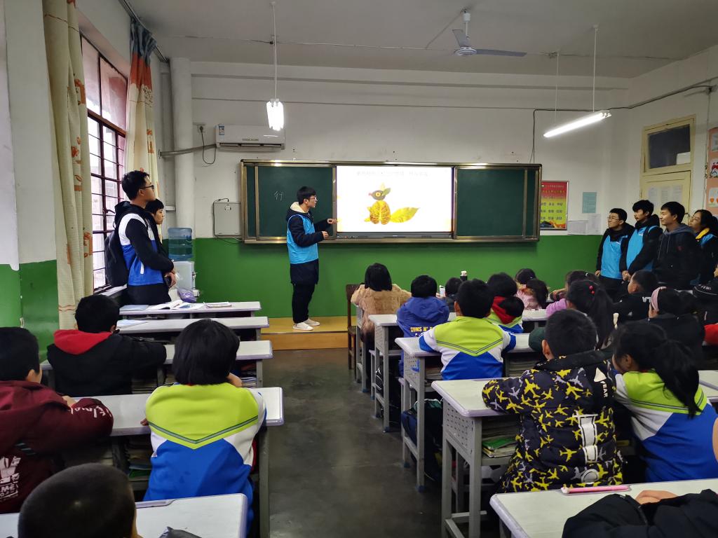 11月28日下午4点,青分队干事在球王会体育官方网站校门口准时集合,乘307公交车于4:30到达博睿小学。即使处于深秋,天气寒冷,志愿者们仍跃跃欲试想与同学们交流相处。在博睿小学门口,志愿者集合并拿着志愿者旗帜合照,本次活动正式开始。在对接老师马少辉的带领下,志愿者们来到博睿小学四年级的教室,同学们对我们的到来表示热烈欢迎,掌声雷动。在课程开始前,他们还为我们齐声合唱《夜空中最亮的星》,十分令人感动。随后,主持人孙世英宣布本次活动正式开始。活动第一项,由博睿小学马老师上台致辞,简单介绍我们本次的活动,希望同学们积极配合我们的活动。活动第二项,由本次宣教活动主讲人胡浩冰上台开始本次教学,他用PPT向同学们展示了秋天的诗词引入本次课程主题,并给同学们展示优秀的树叶贴画的照片示例给同学们创意思路,最后介绍了制作树叶贴画的制作步骤。活动第三项,主讲人开始让同学们发挥想象力开始自己动手制作树叶贴画。志愿者在同学们旁边拿着剪刀、固体胶、便利贴等为同学们服务,协助同学们顺利完成自己的作品。在大家的默契配合下,同学们终于都顺利完成了自己的作品。活动的最后,我们给每位同学准备了糖果作为配合活动的奖励,同时在大家的作品中也选出了优秀的三份,为他们准备了笔记本作为活动奖品,获奖的同学们在讲台上拿着自己作品奖品合影留念。至此,本次活动圆满结束。