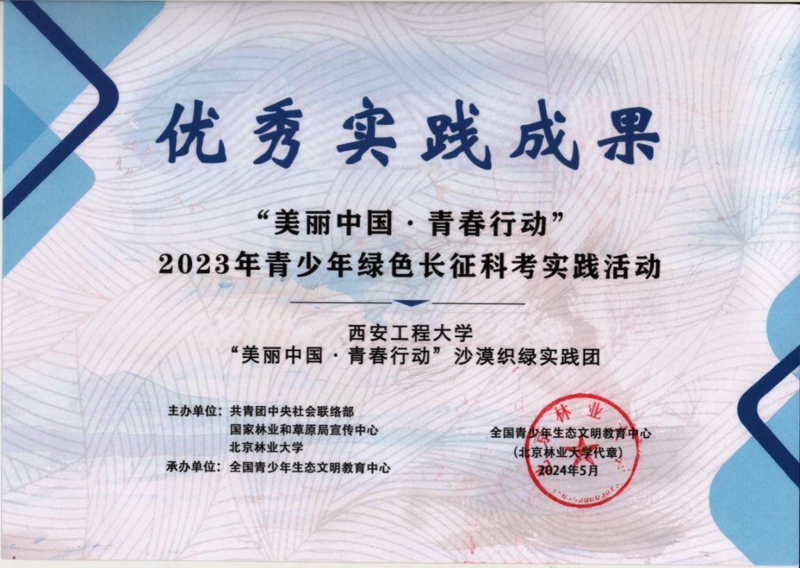 我校球王会体育“美丽中国·青春行动”沙漠织绿实践团在2023年绿色长征科考实践活动中荣获优秀实践成果奖!