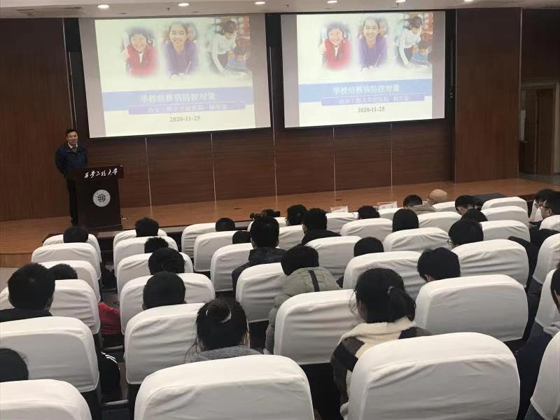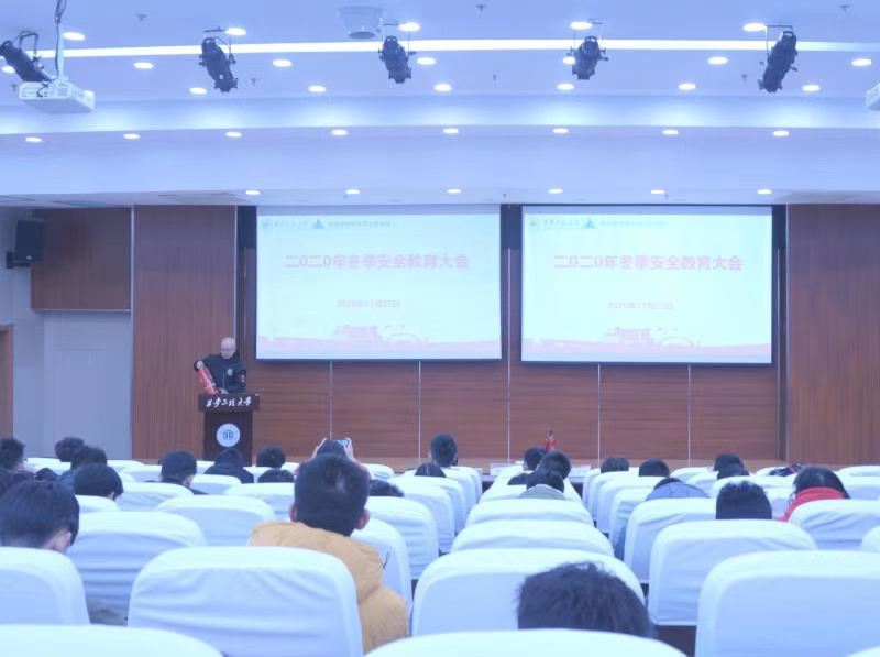 11月25日下午,球王会体育在临潼校区图书馆二楼报告厅召开2020年冬季安全教育大会。校医院杨军宏大夫、校保卫处治安防卫二科科长胡昌、学院学生工作办公室主任、团总支书记凌旭,各年级班长、团支书、宿舍舍长以及学生代表参会。