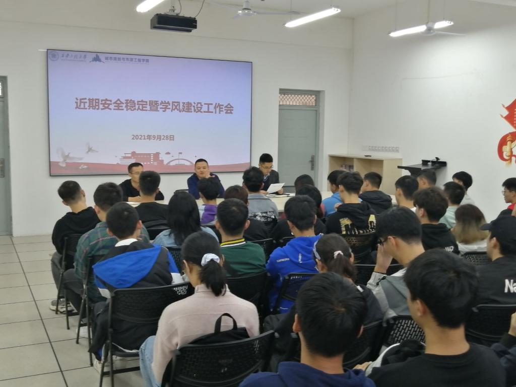 9月28日中午,球王会体育在临潼校区8-322会议室召开近期安全稳定暨学风建设工作会。学院学工办主任凌旭、辅导员陆瑞成、王春元以及各年级班长和团支书参加会议。