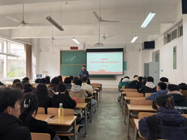 各年级辅导员强调了新型冠状病毒感染“乙类乙管”方案要求和突发情况工作预案,强调全体班团干部需发挥作用,关注同学的健康状况,做好信息报备。第二,本学期是线上教学向线下教学过渡的关键时期,城市学院将紧抓学风建设,各级班团干部需发挥榜样示范作用,并协助辅导员做好考勤工作,营造积极进取、求实拼搏的班风学风。第三,各年级辅导员强调了新学期的心理健康工作,明确班团干部要主动沟通交流,关心团结同学,关注同学心理健康。最后,各年级辅导员开展诚信考试教育,强调考场纪律要求,要求班团干部必须严于律己,并积极向班级同学传达诚信考试相关要求。