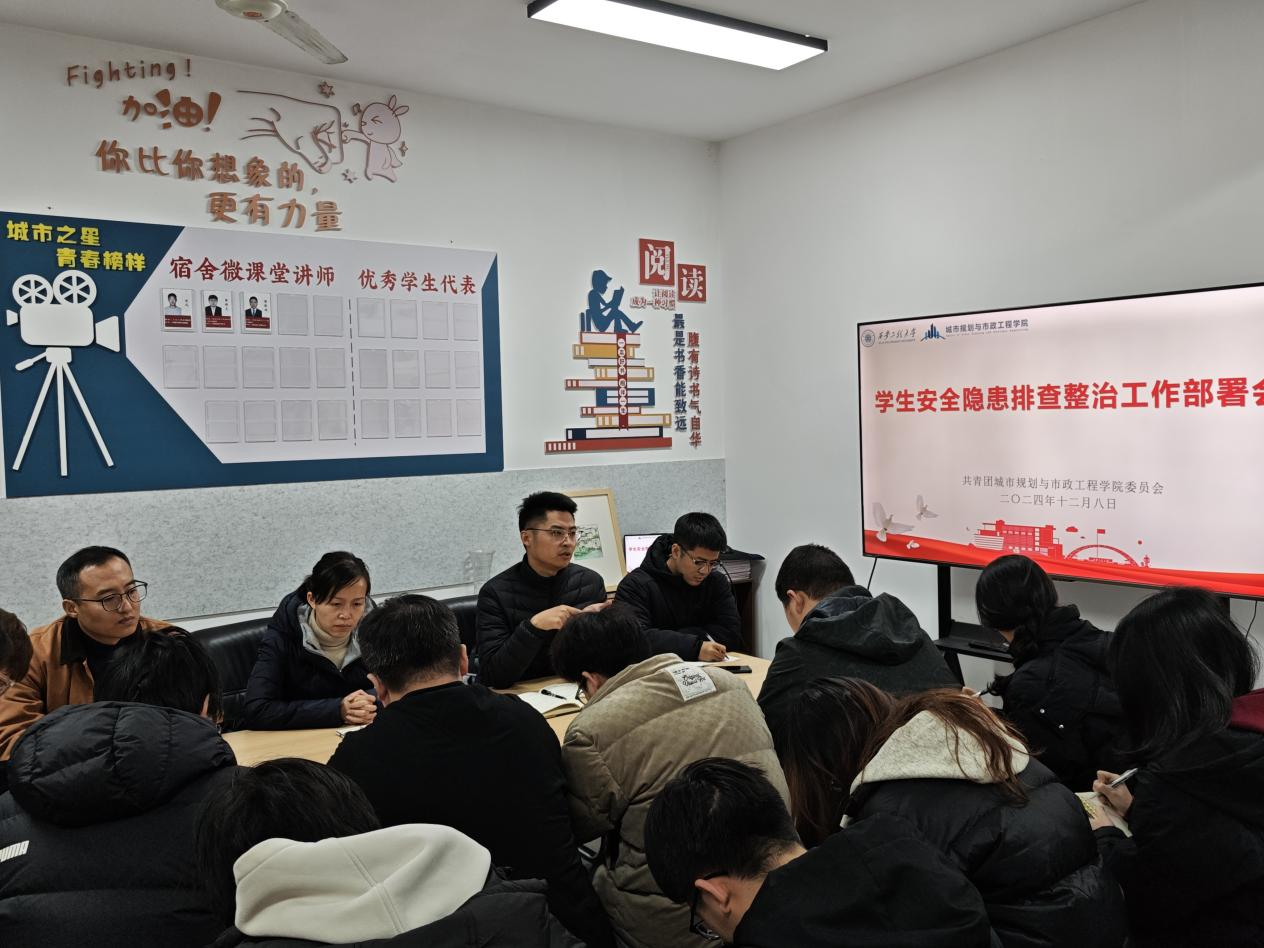 为深入贯彻落实省委教育工委、学校安全稳定有关工作要求,防范化解学生群体安全稳定风险隐患,进一步强化学生公寓安全卫生管理,全面掌握学生思想行为动态。球王会体育于2024年12月8日下午在一站式学生社区召开“学生安全隐患排查整治工作部署会”。学院党委副书记鱼园、学工办主任陆瑞成、各年级辅导员、各党支部支委、学生组织主席团成员、学生社团负责人、权益部全体成员参会。