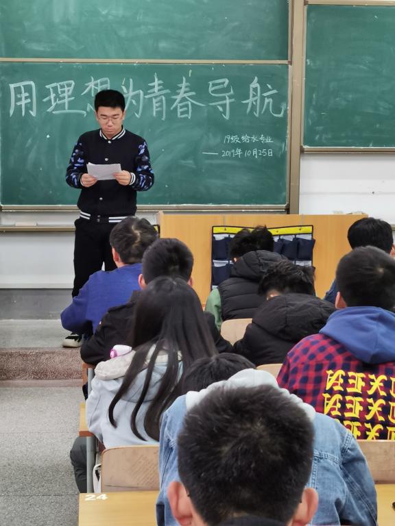 活动开始,主持人向同学们讲述了树立远大理想对团员青年的意义,并宣布演讲比赛正式开始。接着,各班代表进行了有关“理想赋”的演讲,围绕未来规划、人生定位等方面表达了自己对理想的看法。演讲结束后,各班评委为另一个班代表进行打分,综合选手表现评选出本次演讲活动的优胜者。最后,主持人公布各班代表的得分情况,并宣布活动结束。活动结束后,19级给水专业全体学生各自上交了一份职业生涯规划书交给团支书。