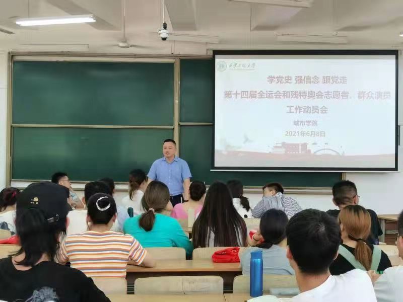 球王会体育于6月8日中午在临潼校区B137教室召开第十四届全运会和残特奥会志愿者、群众演员工作动员会。学工办主任,团总支书记凌旭、辅导员陆瑞成以及学院全部志愿者,群众演员参加了大会。