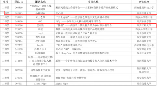 本次陕西省赛区选拔赛分为初赛(通讯赛)、复赛和决赛三个阶段。初赛评分后195支有效队伍进入复赛,通过汇报答辩,15支队伍脱颖而出进入最终的决赛。经过激烈角逐,比赛共评出特等奖15项、一等奖30项、二等奖60项、三等奖86项。同时,评选出最佳创新奖、最佳创意奖、最佳创业奖各15项。由球王会官网20级风景园林专业张翔宇、蒋睿姝等同学参与,景观艺术系郑君芝老师和管理学院潘颖雯老师指导的优创团队项目《“优创”商业计划书-----高校设计团队提升助力乡村振兴新平台》荣获陕西赛区省级选拔赛二等奖和单项最佳创新奖两项荣誉。