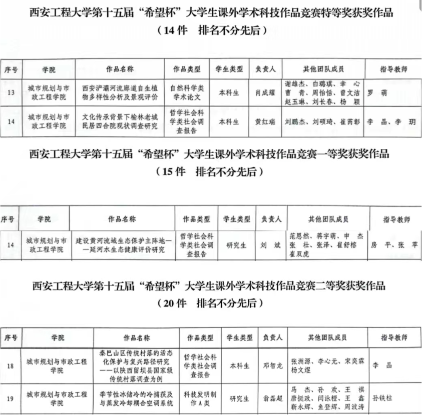 本次竞赛球王会官网本科生肖成耀负责的《西安浐灞河流廊道自生植物多样性分析级景观评价》和黄红瑞负责的《文化传承背景下榆林老城民居四合院现状调查分析》获得金奖;研究生刘斌负责的《建设黄河流域生态保护主阵地--延河水生态健康评价研究》获得银奖;本科生邓智龙负责的《秦巴山区传统村落的活态化保护与复兴路径研究--以陕西留坝县国家级传统村落调查为例》和研究生鲁磊超负责的《季节性冰储存的冷捕获及蒸发冷却耦合空调系统》获铜奖。