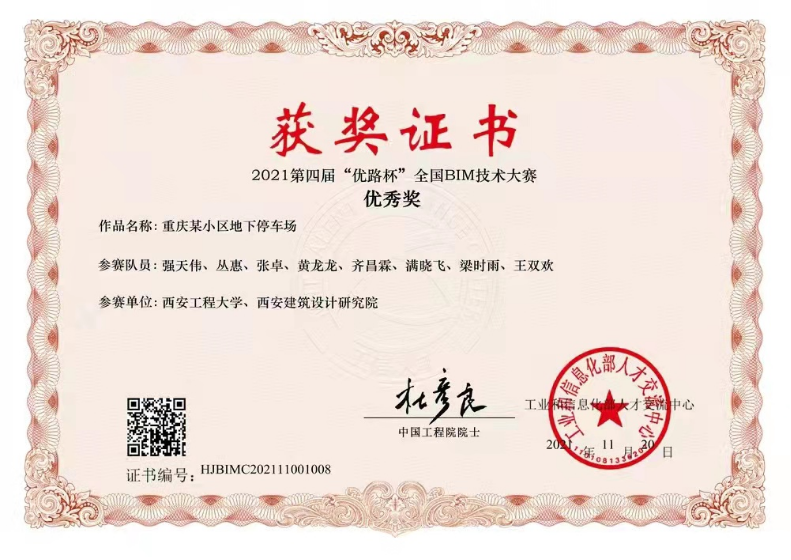 近日,在2021第四届“优路杯”全国BIM技术大赛由国家工业和信息化部人才交流中心主办,石家庄铁道大学、郑州高新区管委会联合承办的全国BIM技术大赛总决赛上,由球王会体育研究生张卓及本科生黄龙龙、齐昌霖、满晓飞、梁时雨、王双欢组队,强天伟老师指导的参赛项目“重庆某小区地下停车场”荣获大赛优秀奖;
