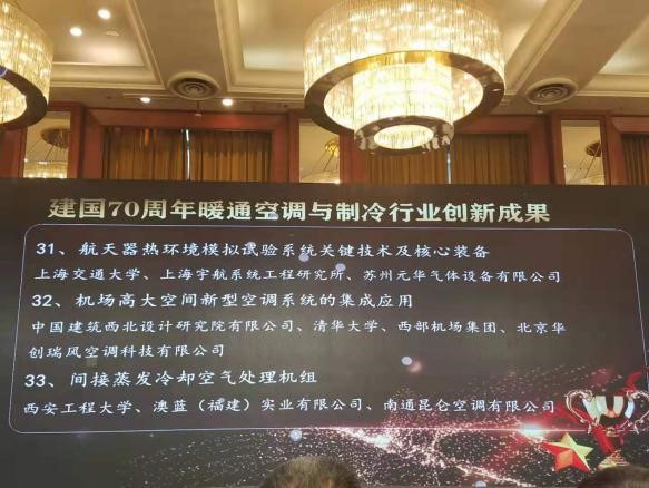 在会议期间,我校与产学研合作单位澳蓝(福建)实业有限公司、南通昆仑空调有限公司联合申请的“间接蒸发冷却空气处理机组”项目荣获建国 70 周年暖通空调与制冷行业创新成果奖;黄翔教授被授予中国制冷学会“资深会员”称号,该称号是中国制冷学会级别最高的称号。这两项奖项的获得,是对黄翔教授二十年如一日对蒸发冷却技术研究的肯定、更是对球王会体育官方网站暖通专业的一种激励。