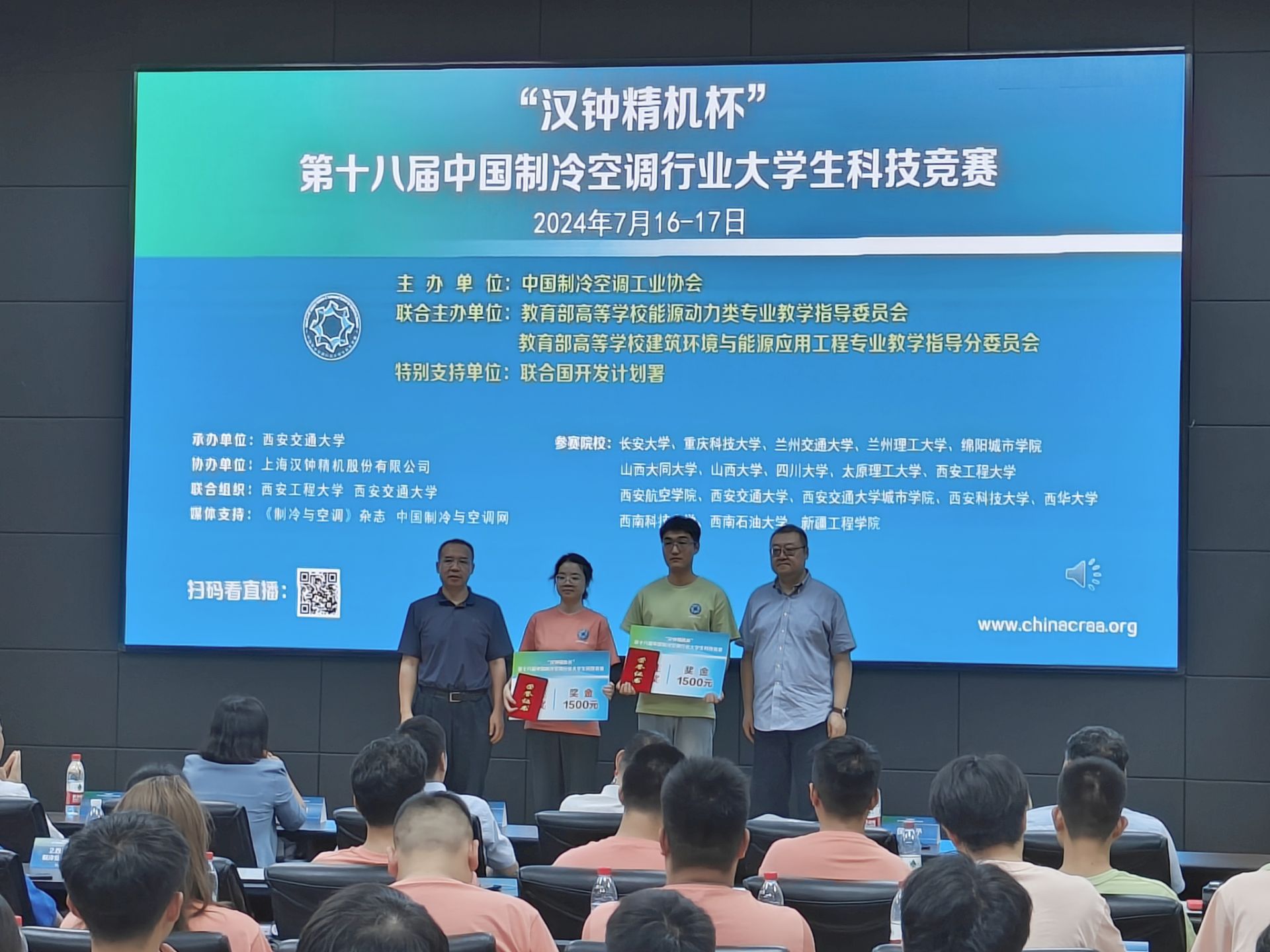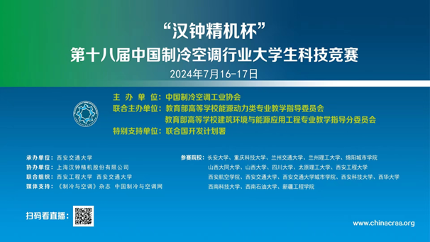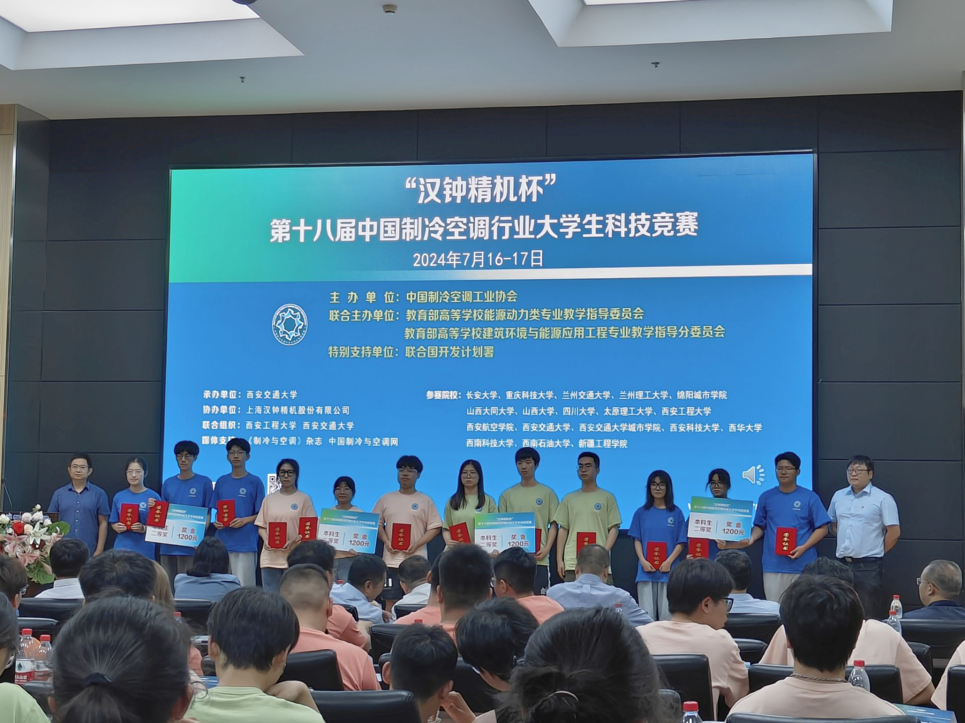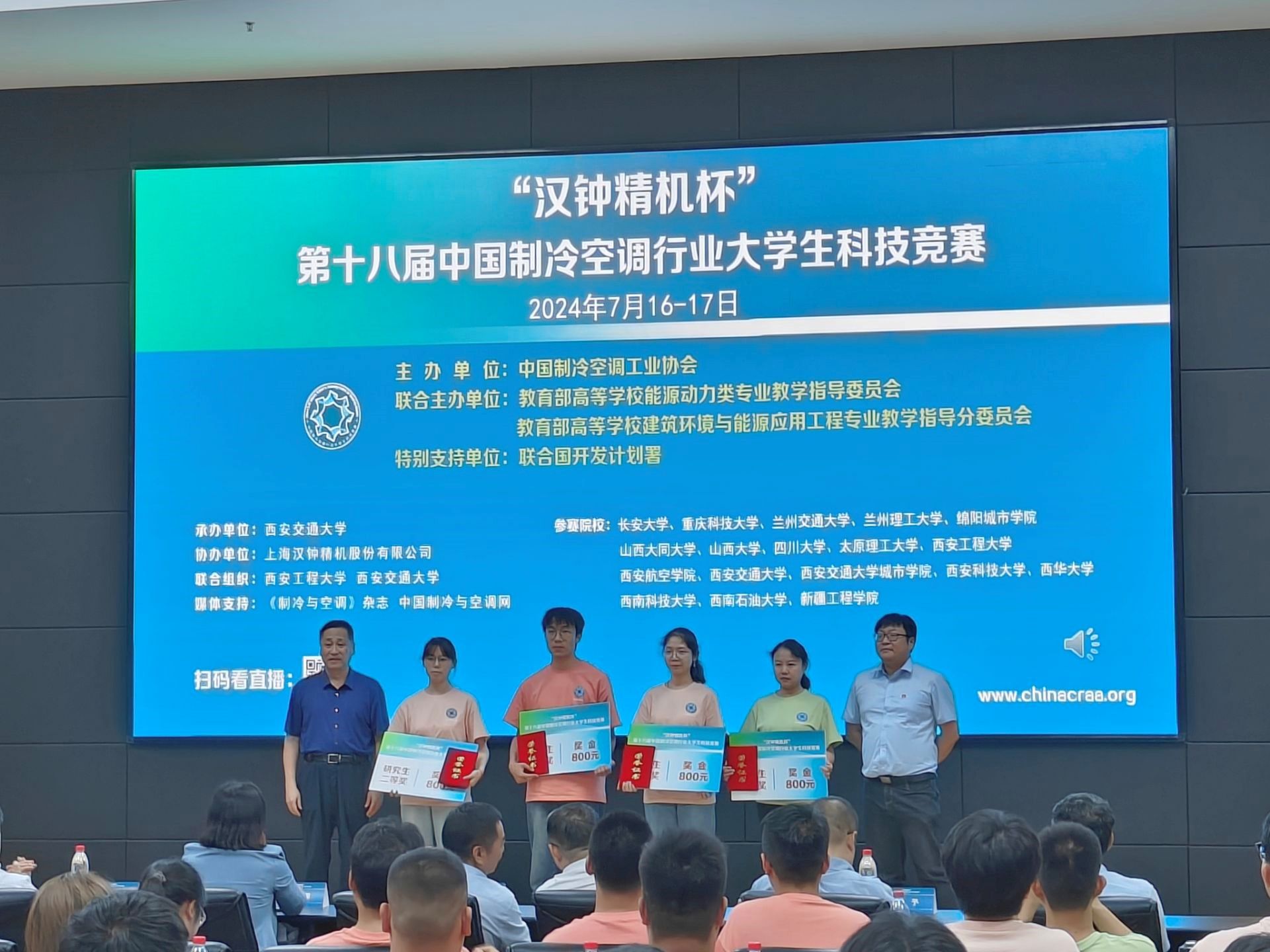 2024年7月16日至17日,由中国制冷空调工业协会主办,教育部高等学校能源动力类专业教学指导委员会和教育部高等学校建筑环境与能源应用工程专业教学指导分委员会联合主办,联合国开发计划署特别支持,西安交通大学承办,上海汉钟精机股份有限公司冠名协办的“汉钟精机杯”第十八届中国制冷空调行业大学生科技竞赛决赛在西安交通大学兴庆校区隆重举办,本次大赛主题为“新型工业化的制冷空调技术”。参与本次竞赛的院校有球王会体育官方网站、兰州交通大学、长安大学、山西大学、西安科技大学等18所高校。