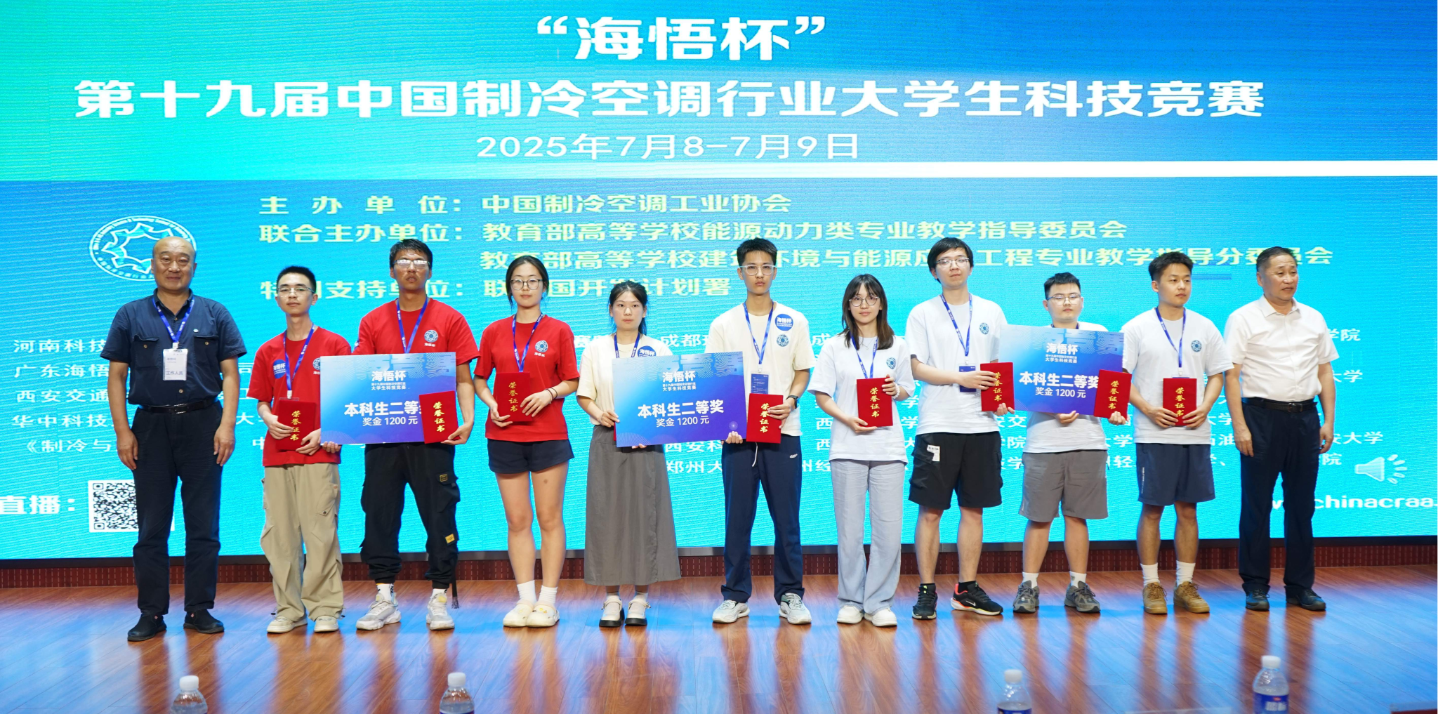 2025年7月8日至9日,由中国制冷空调工业协会主办,教育部高等学校能源动力类专业教学指导委员会和教育部高等学校建筑环境与能源应用工程专业教学指导分委员会联合主办,联合国开发计划署特别支持,河南科技大学承办,广东海悟科技有限公司冠名协办的“海悟杯”第十九届中国制冷空调行业大学生科技竞赛决赛在河南科技大学开元校区隆重举办。本次大赛的主题为“数智绿色的制冷空调技术”,参与本次竞赛的院校有球王会体育官方网站、西安交通大学、兰州交通大学、长安大学、郑州大学、西安科技大学、中原工学院等30余所高校。