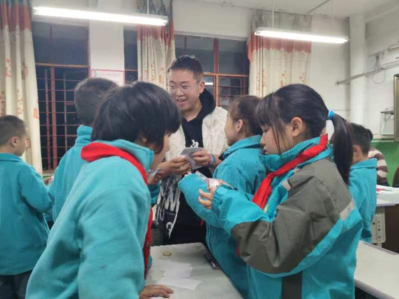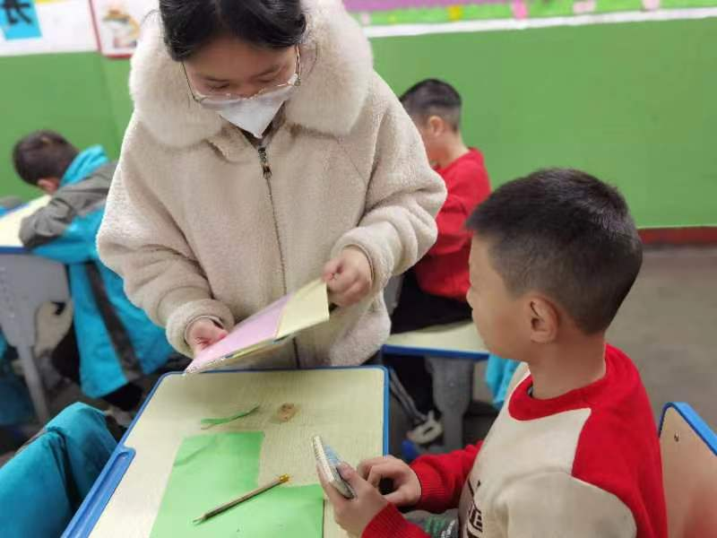 活动开始,支教团队被分成若干组进到不同年级的不同班级,针对不同的年级的学生开展了例如励志教育、心理健康、艺术熏陶等适合本年龄阶段的教学主题。接着,各班级学生对我们的到来表示热烈欢迎。随后,支教成员以PPT的方式对落叶画册的制作过程进行了讲解,并带领小朋友们制作落叶画册,展示制作精美的手工作品,激发大家的想象力,加强小朋友们对美的进一步认识。最后,支教成员与小朋友们合照留念,激励小朋友们好好学习,努力成长为社会主义事业的合格建设者和可靠接班人。