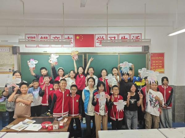 2024年4月24日,球王会体育受资助学生代表和学院青协志愿者共同前往博睿小学开展艺起成长——美育筑梦课堂教学工作。活动旨在通过绘制非遗传统风筝,让小学生们走近非遗文化,感受传统,弘扬传统,热爱传统;也让大学生结合专业所学,充分发挥自身才能,散发光热,回馈社会。