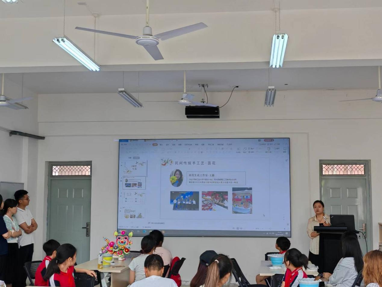 学院校外美育指导教师王鑫为与会同学讲解了非遗文化的概念、花馍的发源与传播等相关知识,并结合自身学习和创业经历,让同学们充分感受面花这一艺术背后非遗文化的独特魅力。接着王鑫为同学们讲解了面花的详细制作过程以及定形,上色等步骤,让参与同学掌握面花的基础知识和基本技能。