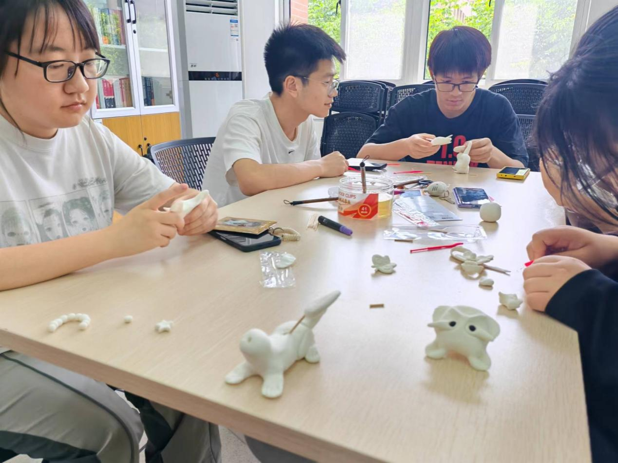 实践环节中,同学们主动与小朋友组成5人小组,依次领取制作小老虎面花所需的材料并按照王鑫老师讲解的制作步骤和创作要点进行面花制作,有的捏头、有的捏身体、有的捏尾巴,同学之间分工明确、相互配合,在短时间内捏出自己预想的形状,接着进行上色、组装,一个独具一格的面花作品便呈现在大家眼前,让同学们不禁赞叹面花的魅力。