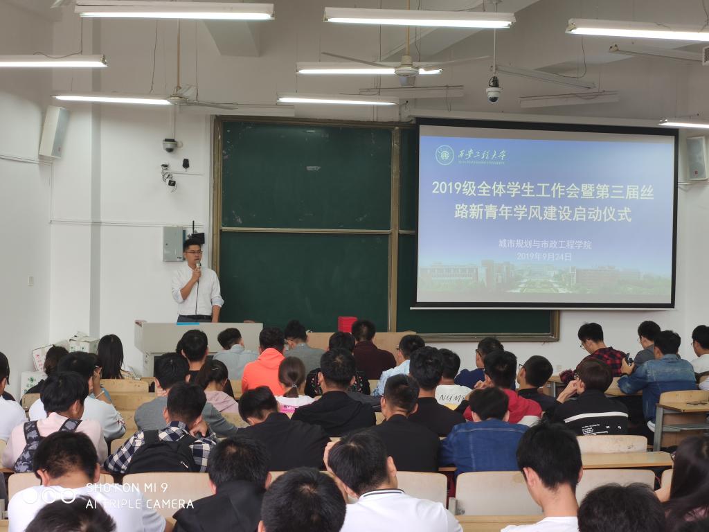 9月24日中午,球王会体育于临潼校区B-135召开19级全体学生工作会暨第三届丝路新青年学风建设启动仪式。参加本次会议的有全体辅导员、各学生组织负责人、各班班主任助理及19级全体学生。本次会议由陆瑞成主持。
