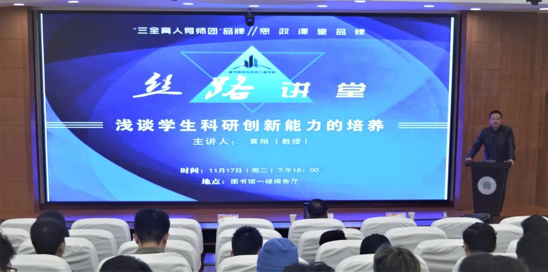 11月17日下午,球王会体育“三全育人导师团”与思政课堂新品牌“丝路讲堂”在临潼校区图书馆一楼报告厅隆重开讲。学院建环导师团团长黄翔教授担任“丝路讲堂”第一讲主讲嘉宾,学院党委副书记袁群、学工办主任凌旭参加了本次活动。