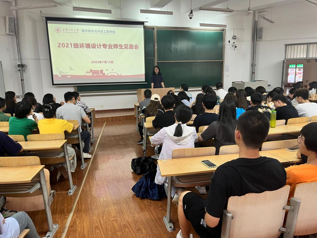 7月13日下午,城市学院在临潼校区B133教室举行2021级环境设计专业师生见面会。学院院长马云、党委书记王劲伟、副院长房平、景观系全体教师、辅导员以及2021级环境设计专业全体学生参加会议。会议由学工办主任凌旭主持。